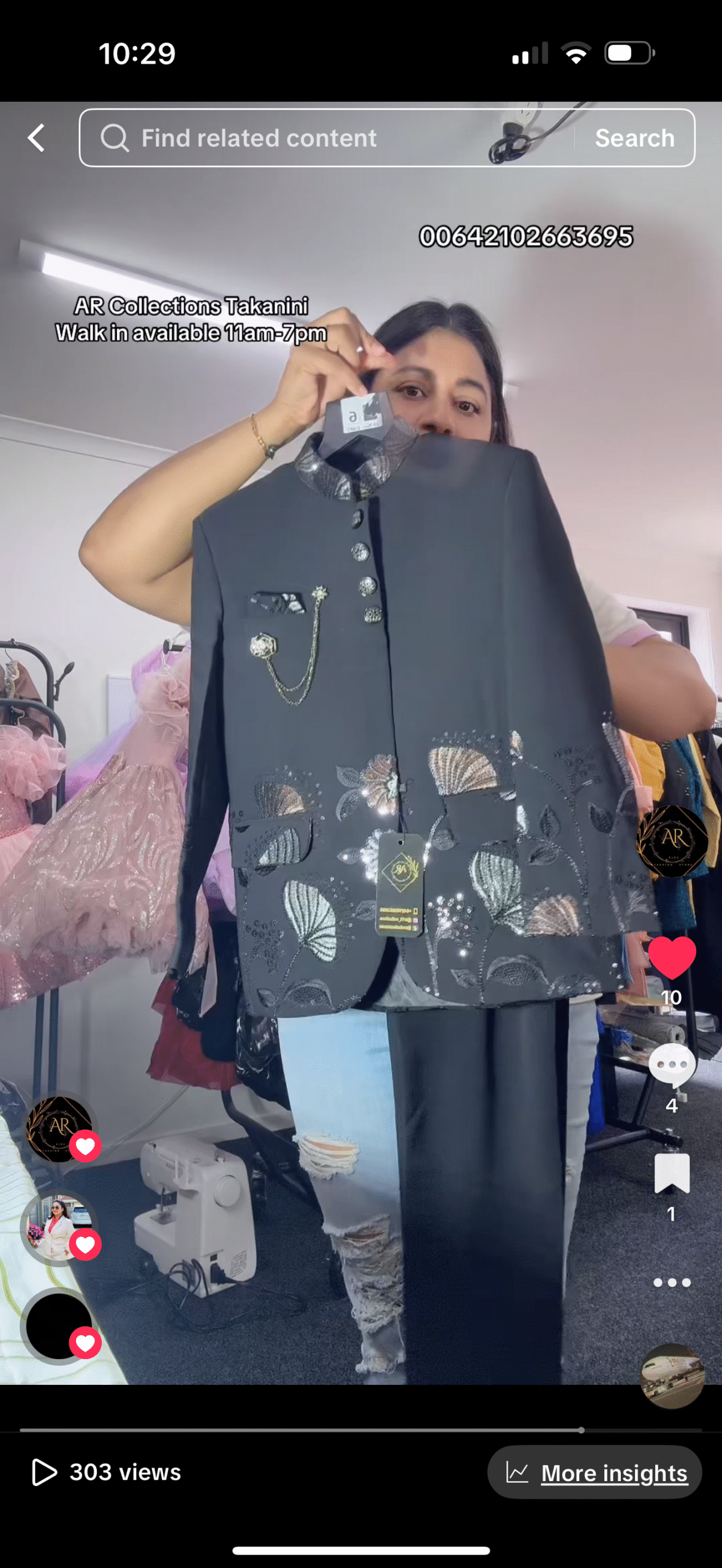 • Embellishment: Embroidered coat front and back, Sleeves work