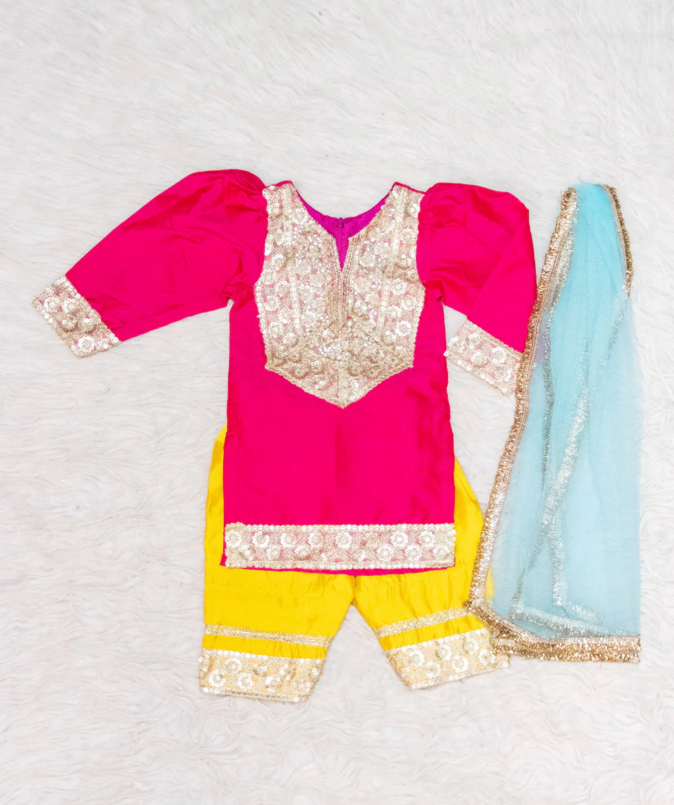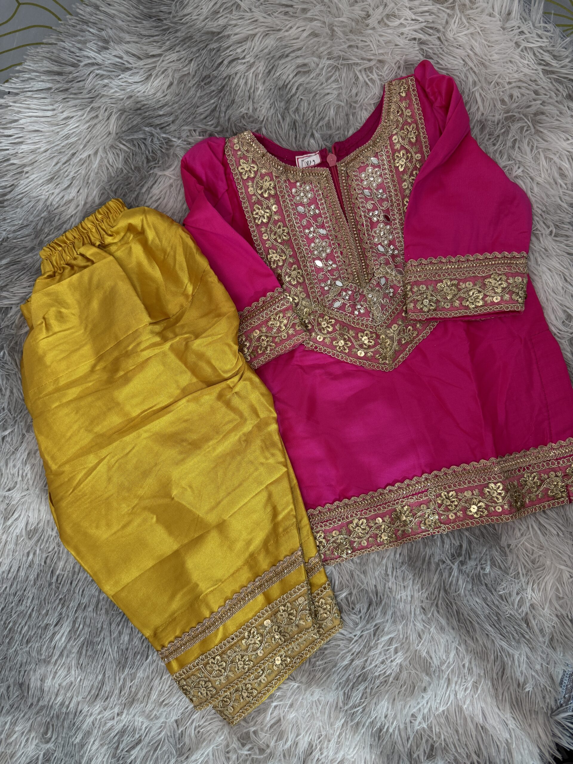 Stunning hot pink and yellow mustard combination of punjabi suit with trending farshi salwar