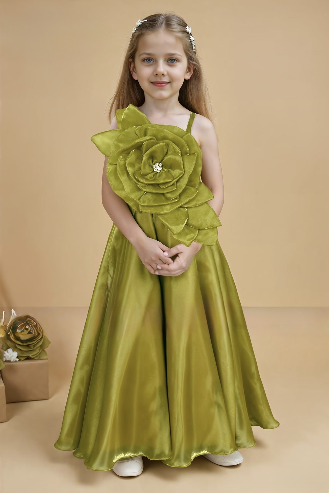 Mehendi Green Gown ideal for special occasions, Weddings and Birthday Parties. Let your Princess shine and stand out with this extraordinary outfit.